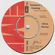"Someone's Coming" is a song by the British singer-songwriter Steve Harley, which was released in 1979 as the second and final single from his 1978 debut solo album Hobo with a Grin.[2] It was written by Harley and Jo Partridge, and produced by Harley.[3]
