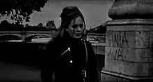 Amanda Dobbins of New York magazine concluded that "the secretly devastating video" for "Someone like You" will remind Adele's ex-lover what he has done by leaving her.[72] A writer of The Huffington Post praised the simplicity and the sadness in the video.[73] Sarah Dean of the same publication called it an "uncomplicated, moving film" and wrote, "the video is nothing more than Adele wandering around the deserted city of love alone, under its grey skies, singing her sorrowful notes, but because it's her, we don't need any more."[74] That was somehow echoed by Jason Lipshutz of Billboard magazine who said that the video was "simply constructed as the song's vocal-and-piano arrangement."[75] Marc Hogan of Spin said that the scene in which Adele looks in the camera, "speak[s] for itself" about the sadness in the video.[76] Andrew Matson of The Seattle Times said, "the song of the year now has a simple, perfect video: Adele in Paris, singing and strolling, apparently processing the breakup detailed in the song's lyrics. The look on her face during the 'I wish nothing but the best for you' line is the best, just gutting, a real achievement how she plays it cold but not sarcastic. I think in times of emotional devastation, everyone wants stand on a bridge over the Seine on a cold day, squinting into the wind, sorting it out."[77]