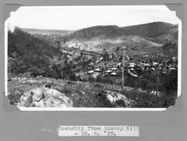 The town was constructed in 1935 to provide accommodation for those working on the construction of the dam and their families with the first businesses opening in 1936. The town was designed by civil engineer Charles Bank Mott like a suburban with gravel streets, electricity, street lights, reticulated water, stormwater drainage, and sewerage. Mott was seconded for three years from the Brisbane City Council.[9]
