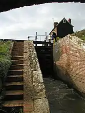 Somerton was farmed in an open field system of four fields until William Fermor secured an enclosure act from Parliament in 1765.[4] Thereafter Somerton's population grew, reaching 400 in the 1821 census. The stretch of the Oxford Canal between Banbury and Tackley was completed in 1787.[13] It runs along the Cherwell valley, and at Somerton it passes between the river and the village. Somerton Deep Lock was built 2⁄5 mile (1 km) north of the village.