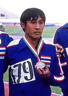 Somsakdi Boontud (Thai: สมศักดิ์ บุญทัต, born 24 November 1952) is a retired Thai sprinter who specialized in the 4 × 100 m relay. In this event he won gold medals at the Asian Games in 1974 and 1978, and four silver medals at the Asian Games and Championships between 1979 and 1983. He competed at the 1972 and 1976 Summer Olympics, but failed to reach the finals. Individually he qualified for the 1975 Asian Championships in the 200 m, but withdrew due to injury.[1]