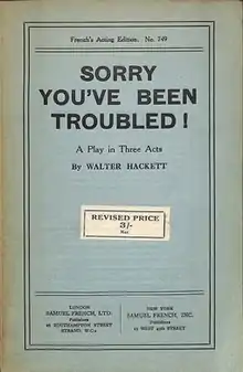 Sorry You've Been Troubled is a mystery play by the British-American writer Walter C. Hackett.