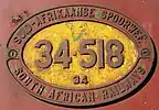 While it is believed that they were for the most part renumbered from Iscor numbers to SAR numbers in sequence with their Iscor numbers, at least one locomotive has been observed as being out of sequence. No. 34-523 bore works plate no. 35265, identifying it as ex Iscor no. 5D. It can be presumed that no. 34-505 carried works plate GE 40402, which would make it ex Iscor no. 23D, but since the works plates have over time disappeared from most of these locomotives, this cannot be confirmed.[1]
