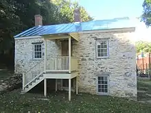 19th century Sykesville Stone House. $110,000 renovation included having a front porch replaced with new smaller unit with steps on opposite side. Side additions removed.