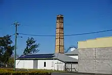 Other earlier structures associated with butter and milk product processing include a rectangular timber shed to the McLucas Street side and a small timber shed with twin gable roofs standing south of the stack.[1]