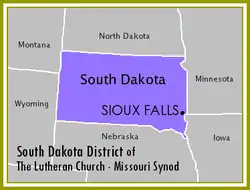 - ↑ "South Dakota District". Lutheran Church – Missouri Synod. Retrieved July 20, 2020.