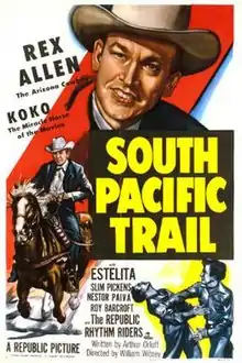 South Pacific Trail is a 1952 American Western film directed by William Witney, written by Arthur E. Orloff, and starring Rex Allen, Estelita Rodriguez, Slim Pickens, Nestor Paiva, Roy Barcroft and Douglas Evans. It was released on October 20, 1952, by Republic Pictures.[1][2][3]