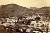 South Royalton is an unincorporated village and census-designated place (CDP) in the town of Royalton, Windsor County, Vermont, United States. With a population at the 2010 census of 694,[3] South Royalton is the largest community in the town. It is home to the Vermont Law School. The central portion of the village is a historic district, listed on the National Register of Historic Places as the South Royalton Historic District. The Joseph Smith Birthplace Memorial is located approximately two miles to the east. South Royalton is the town pictured in the opening credits of the WB television show Gilmore Girls.[4]