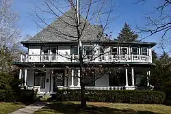 The South Summit Street District is a nationally recognized historic district located in Iowa City, Iowa, United States. It was listed on the National Register of Historic Places in 1973.[1] At the time of its nomination it consisted of 50 contributing buildings, most of which were built between 1860 and 1910.[2] The west side of the 300 block formed part of Iowa City's original boundary. A 6-foot (1.8 m) limestone obelisk at 331 South Summit marks the original southeast corner of the city. Although nothing is left of it, Camp Pope, a training camp for the Union Army during the American Civil War, was located in this area in 1862. Three Iowa Infantry regiments, the 22nd, 28th and 40th, trained here. The street itself was created in the 1850s and the 1860s, and it was incorporated into the city in 1881. The neighborhood is a park-like setting with mature trees and large homes that sit back from the street. A large variety of architectural styles are represented in the neighborhood.