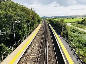 Southease railway station is located 0.5 miles (800 m) east of the village of Southease in East Sussex, England. It is on the Seaford branch of the East Coastway Line, 53 miles 40 chains (86.1 km) measured from London Bridge via Redhill.[1] The station is surrounded by agricultural land. The South Downs Way crosses the Seaford Branch here.