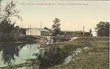 The Southern New York Railway (SNY) was an electric rail line that provided passenger and freight service, but also provided electricity for customers along the line until 1924.[1] The railway was previously called Oneonta Street Railway (1888-1897), Oneonta & Otego Valley Railroad (1897-1900), Oneonta, Cooperstown & Richfield Springs Railway (1900-1906), Oneonta & Mohawk Valley Railway (1906-1908), Otsego & Herkimer Railroad (1908-1916), Southern New York Power & Railway Co. (1916-1924), and Southern New York Railroad (1924-1970).