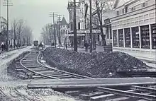 The line was laid north from Oneonta. It reached Laurens in July 1901, Cooperstown in September 1901, Richfield Springs in the summer of 1902, and Mohawk by 1906. A car barn, powerhouse, and dispatcher office were built in Hartwick. There was also a substation to power the line by the station in Schuyler Lake.[2] On April 19, 1901, the Village Trustees of Cooperstown unanimously voted to allow the line to enter the village via Chestnut Street to Main Street, on the condition that no car carrying freight run on village streets except from the southern village boundary to the CACV Railroad.[3]