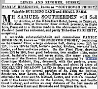 Sale notice for Southover Grange (sometimes called Southover Priory) in 1864