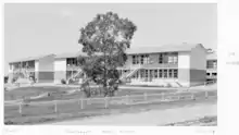 The site was cleared by November 1954 and tenders called for the transport of building materials from the railway to the school site.[33] Construction commenced soon afterwards. The initial teaching buildings comprised three Hawksley prefabricated school buildings imported from Britain. All three (Blocks A, B and C) were erected by the end of July 1955 and teaching commenced there in late August 1955.[34][35][1]