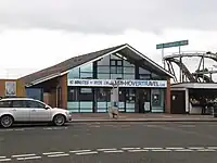 Southsea Hoverport is adjacent to Clarence Pier in the Southsea area of Portsmouth in southern England. From here frequent hovercraft services leave for Ryde on the Isle of Wight. The journey time is quicker than the conventional boats that sail from Gunwharf Quay, elsewhere in Portsmouth, but the hovercraft are more prone to service curtailment in inclement weather. Another problem are connections from here as when the service first started in the mid-20th century much of the land closer to Portsmouth and Southsea station was already occupied by both residential and naval units. To help alleviate this problem Stagecoach run the "Hoverbus" linking the terminal with Portsmouth and Southsea station and Portsmouth city centre. The nearest railway station is Portsmouth Harbour railway station, although Portsmouth and Southsea station is not much further away.