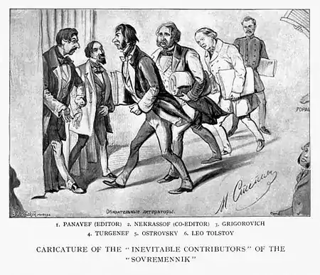 When Pushkin died, his friend Pyotr Pletnyov took over the editorship in 1838. A few years later the magazine fell into decline, and Pletnyov handed it over to Nikolay Nekrasov and Ivan Panaev in 1847. It was Nekrasov who really made the magazine profitable. He enlisted the services of Ivan Turgenev, Ivan Goncharov, Alexander Herzen and Nikolai Ogaryov. Sovremennik was the first to publish translated works by Charles Dickens, George Sand and other best-selling foreign writers.