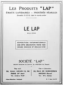 Calo-Séailles was born in Constantinople in 1885 where her name was Elpís Kalogeropoúlou. She first attracted attention as a mezzo-soprano and she acquired a patron who was willing to support her development. In 1923 she invented a type of decorative concrete and a patent was applied for in June 1923. The new material which went under the name Lap. Her invention was developed by her and her husband who was a Sorbonne Professor.[1] In 1929 her Lap materials was used in the construction and decoration of the Halles de Boulongrin in Rheims. They provided a challenge when the building was renovated in 2012 and the panels were replaced with GR.[1] In 1930 she was creating work using Lap with Tsuguharu Foujita.[2] Foujita made her portrait and also created several works in Lap at the company's base in Antony.[3]