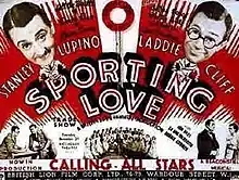 Sporting Love is a 1936 British musical comedy film directed by J. Elder Wills and starring Stanley Lupino, Laddie Cliff and Lu Ann Meredith. It was made at Beaconsfield Studios.[1] It was based on the musical Sporting Love which Stanley Lupino had written and starred in. Lupino had broken with British International Pictures to make a couple of independent films, but after this he returned to BIP.