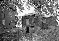 Contributing buildings on this historic property are the brick farmhouse, a brick spring house/smokehouse, and a frame barn. The house was built circa 1817 and is a 2+12-story, fourteen-room, rectangular building that sits on a rubble stone foundation. It measures 65 feet by 35.6 feet and has a center hall plan.[2]