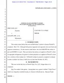 1. 1 2 "Spry Fox, LLC v. Lolapps, Inc". Santa Clara Law Digital Commons. September 18, 2012. Archived from the original on March 10, 2021. Retrieved March 9, 2021.