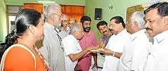 Sathish Kalathil submitting memorandum to Oommen Chandy about S.R.V music school termination