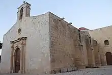 St. Catherine's Old Church (Maltese: Knisja ta' Santa Katerina l-Antika), also known as St. Gregory's Church (Maltese: Knisja ta' San Girgor), is a Roman Catholic church in Żejtun. The church and its complex sit towards the outskirts of the town, commanding views over Marsascala Bay, St. Thomas' Bay and Marsaxlokk harbour. The church is colloquially known as Saint Gregory's due to a traditional procession held on the first Wednesday following Easter Sunday.[1] Its dedication to Catherine of Alexandria dates back to an original chapel on this site, which was one of the eight mother churches on Malta.[2] The church stands next to the three cemeteries of Żejtun, dedicated to St. Rocco, St. Gregory and St. Catherine.[3] The church's functions as the parish church of Żejtun were taken over by a new parish church, also dedicated to St. Catherine, and designed by Lorenzo Gafà.