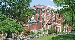 The building was built on a mansion designed in the Greek Revival architectural style for John F. Erwin and his wife Lavinia Robertson Erwin.[2] By 1903, three more houses were joined together to become home to the first Roman Catholic school in the state of Tennessee.[2] It is now home to the convent for the Dominican Sisters of Saint Cecilia.[2]