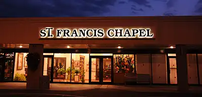 St. Francis Chapel was a Catholic Franciscan chapel, sponsored by the Holy Name Province of the Order Friars Minor. It began in the Northway Mall in Colonie, New York, United States on December 28, 1970.[1] Its final location was at Wolf Road Shopper's Park at 145 Wolf Road in Colonie. According to the St. Francis Chapel Mission Statement, its purpose was to continue the tradition of St. Francis of Assisi who preached in the marketplace.[2][3]