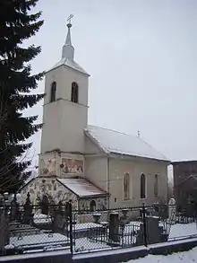 The town’s Romanian community had a wooden church as early as 1750. In 1790, the authorities of the Principality of Transylvania approved the construction of a new Orthodox church. Another wooden church was built on the site of the old one. Later, in 1802, a stone spire was added, which survives to this day.[1]