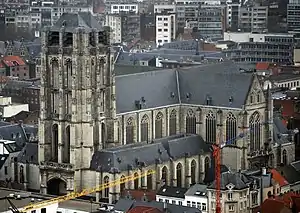 St. James' Church (Dutch: Sint-Jacobskerk) is a former collegiate church in Antwerp, Belgium. The church is built on the site of a hostel for pilgrims to Santiago de Compostela. The present building is the work of the Waghemakere family and Rombout Keldermans, in Brabantine Gothic style. The church contains the grave of Peter Paul Rubens in the eastern chapel.