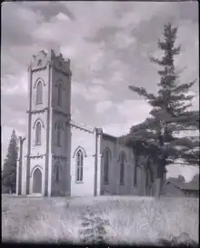 Services were later held in the local schoolhouse until the parishioners signed an agreement dated March 16, 1816, to build a permanent church building.[4] Joseph Shepard donated a parcel of land fronting Yonge Street for the construction of the church. The cornerstone was laid on September 17, 1816, by the Hon. Francis Gore, Lieutenant Governors of Upper Canada, and the Rev. Dr. Strachan.[5][6] The building was complete by August 1817. It was not consecrated until June 17, 1829, in the presence of the Rt Rev. Charles Stewart, 2nd Bishop of Quebec, and the Ven. Archdeacon George J. Mountain, later Stewart's successor as 3rd Bishop of Quebec.[7] The first incumbent of St. John's was the Rev. Charles Mathews, named by letters patent in 1836.