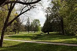 The St. Joseph Park and Parkway System is a national historic district located at St. Joseph, Missouri. It is St. Joseph, Missouri's hiking and biking Parkway ribbons through the city for 26 miles. Developed in 1918 by internationally known landscape architect George Burnap, St. Joseph was one of the first cities in the United States to develop a comprehensive parkway plan. Popular for hiking and biking activities, the completed system connects principal parks and recreation facilities, providing a "green belt" throughout the city.[2]
