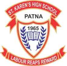 St. Karen's High School, Patna[1][2] is a co-educational institution located in Gola Road area of Danapur, Patna, India, established in 1965. The high school is affiliated to the Central Board of Secondary Education, New Delhi. The institution was founded by Mr. Donald Patrick Galstaun and his wife Lesley Barbara Galstaun (Robert née Webb). The school celebrated its Golden Jubilee in 2015.[3] The current principal of the school is Mrs. Seema Singh.