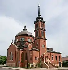 The first officiating priest at the future cathedral was Saint Alexis Toth, who was canonized in 1994. He was at St Mary's from 1889 to 1893.[6] He came into conflict with the local Roman Catholic bishop, John Ireland, who disapproved of a widower becoming a priest, but succeeded in establishing the congregation within what would become the Orthodox Church in America Diocese of the Midwest. The original wooden church burned down in 1904; by the time it was replaced, the congregation was around 900.[3]