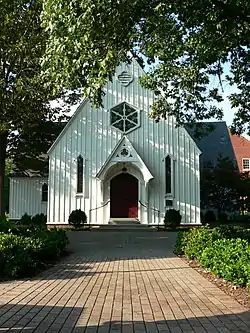 In 1855, the Cameron family donated funds for the construction of a school chapel. Richard Upjohn, a prominent 19th century architect, was chosen to design the building. His notable works include Trinity Church in New York City and Christ Episcopal Church in Raleigh, both of which are National Historic Landmarks. Thomas Atkinson, the third Episcopal Bishop of North Carolina, visited the chapel for the first time in 1858 and said "I was gratified by its beauty, its appropriate arrangements, and its adaptation to its purpose." Transepts were added in 1905, though most of the chapel was left unchanged.[2] The building was designated a Raleigh Historic Landmark on June 16, 1969, and added to the NRHP on November 20, 1970.[3][4] The building is also designated a contributing property to Saint Mary's School's listing as a historic district on the NRHP.[5]