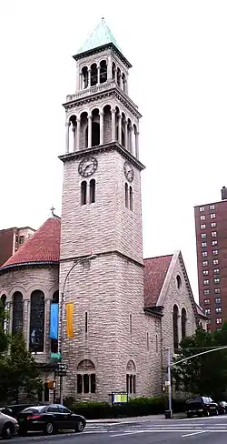 St. Michael's Church is a historic Episcopal church at 225 West 99th Street and Amsterdam Avenue on Manhattan's Upper West Side in New York City.[2] The parish was founded on the present site in January 1807, at that time in the rural Bloomingdale District. The present limestone Romanesque building, the third on the site, was built in 1890–91 to designs by Robert W. Gibson and added to the National Register of Historic Places in 1996.