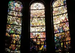 In 1895, Louis Comfort Tiffany (1848–1933) was commissioned to design and install the seven great lancet windows representing St. Michael's Victory in Heaven, along with a marble altar. Twenty-five years later, Tiffany's overall design scheme was completed with the Chapel of the Angels reredos mosaic depicting the Witnesses of the Redemption. From the 1890s through the 1920s, parishioners donated stained glass windows of eclectic styles.