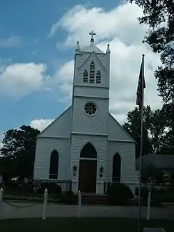 St. Paul's Episcopal Church is a historic Episcopal church in Hanover Courthouse, Virginia, United States. It was built in 1895, and is a one-story, frame building in the Late Gothic Revival style. It has a brick foundation and weatherboard siding with symmetrically placed lancet windows. The front facade features a protruding bell tower in the center with two flanking lancet windows. The church is connected at the northeast corner to an addition used for offices and classrooms, that was built in the 1930s. Another addition was built in the 1960s.[3]