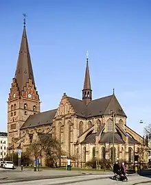 Saint Peter's Church (Swedish: Sankt Petri kyrka) is a Brick Gothic church in Malmö, Sweden. Built in the 14th century as the main church of the city, it has been described as "the main Gothic monument within church architecture in Skåne". The church was a spiritual centre during the Reformation, and was one of only a few churches in what was at the time medieval Denmark that suffered damage due to iconoclasm as a consequence of the Reformation. St. Peter's Church contains late medieval murals of recognized high quality, as well as a number of unusual furnishings. The altarpiece, made in 1611, is one of the largest in the Nordic countries.