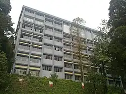In 1962, Father Mackey had arranged a new wing to the old building to provide laboratory facilities. However, this was not enough to lighten the load on the crowded classrooms. Thus, in 1986, Fr. Leo Forestell, S.J. guided the institution to the decision to undertake a major face-lift of Sunny Bank. First finances had to be found for the project, for which Fr. McGuire, S.J. spent a full year in Canada to find supporters. At the same time, the Canadian Government promised support to the tune of $90,000.00 (about 7 lakhs INR). Rs. 5,000/- were raised by the students, and (this amount together with) their labour in the construction of the foundations (popular among the students as "balti" class) remain a gift to future generation of young men looking for a better education. By 1974, the long work was completed, a souvenir booklet brought out for the occasion by the editor, Mr. J.K. Chettri, M.A., B.T., and today St. Robert's school building stands tall and proud in the heart of Darjeeling town. [1]