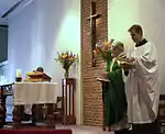 Reverend Elizabeth Carl leading a service at St. Thomas' Parish in 2004