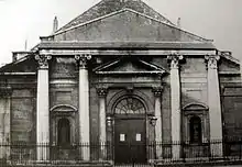 St Thomas's Church was built in 1758-62 in Marlborough Street when the parish of St. Mary's was divided to cope with increased population. The architect of this church (and of St. Catherine's in Thomas Street) was Mr. John Smith. The design is modelled on Palladio's Il Redentore in Venice.[1] £2000 was granted by Parliament for the building of the church, and later another thousand pounds to finish it off. At the time it was considered to have the most beautiful facade of any church in the city,[2] built in the Palladian style similar to St Catherine's Church on Thomas Street.[3] It was opened for worship in 1762.[4]