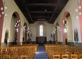The interior is dominated by a large nave with seating for around four hundred and twenty. There are no balconies. Two arched aisles run between the nave and the side walls.