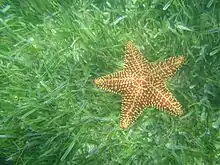 East End Marine Park: Cushion sea star Oreaster reticulatus in seagrass meadow off Cramer's Park.