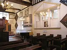 Interior: Newcastle Pew on right; pulpit & reredos on left