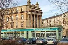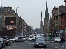 St George's Cross is a road junction in the Woodside area of Glasgow, Scotland. Previously a major intersection for traffic approaching the central areas of the city from its north-western parts,[1] two of the roads forming the junction, Great Western Road and Maryhill Road, were bypassed at the original site in a 1960s realignment,[2] whereas New City Road has had access for vehicular traffic blocked off from the junction itself and is now accessed via Gladstone Street. The cross is now the meeting point of St George's Road, St George's Place, Clarendon Place and New City Road (blocked entry).