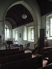 As of late 2007, structurally the church is unchanged in at least 200 years, as indicated by a watercolour painted in 1807,[14] and still retains most of its earlier features. However, the church has undergone a number of repairs and restorations, particular in respect to the building's roof,[15] and the rebuilding of the tower and porch in 1903.[2] An Edwardian postcard (as compared with contemporary images) similarly indicates the interior remains relatively untouched.[16]