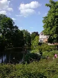 Its grounds include six major buildings, which contain student accommodation, teaching areas, dining hall, the library and administration blocks. The first building occupied by the hall was Cowley House built by Humphrey Sibthorp. Together with later extensions it is now known as Hall. In 1921 the hall acquired the lease of Cherwell Hall, now known as South, which was originally Cowley Grange, a house built by A. G. Vernon Harcourt.[7] The lease of Milham Ford, a former school between Hall and South, was acquired in 1958.[13] More recent additions are Wolfson (opened in 1964), Garden (by Alison and Peter Smithson, opened in 1971), and the Christina Barratt Building (opened in 2001).[14] In autumn 2020, a new Boundary Building replaced some of the older buildings, while Milham Ford, which was demolished in 2018, was replaced by a new riverside "Pavilion".[15][16] The college also owns a number of properties on Iffley Road, and in the Cowley area.[17]