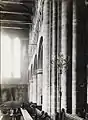 During the 11th century, Earl Leofric was a "great benefactor" of the church.[8] In 1075 Peter, Bishop of Lichfield moved the seat of his see to Chester, making St John's his cathedral.[9] Peter's successor moved his seat to Coventry in 1095,[1] and St John's became a co-cathedral.[2] The building of the church continued on a large scale until the end of the 13th century and continued as a collegiate church of secular canons.[1] Owain Glyndŵr and others made their depositions at the Court of Chivalry inquiry into the Scrope v Grosvenor controversy held here on 3 September 1386.[10] In 1468 the central tower collapsed.