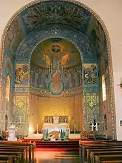 The church was built from 1925 to 1927. The original design for the church had a bell tower, which was never built. From 1930 to 1933, the mosaic in the sanctuary was made. The theme of the mosaic is eternal life. It was designed by Eric Newton of Ludwig Oppenheimer Ltd, cost £4000 and was made by craftspeople in Manchester.[1][10]